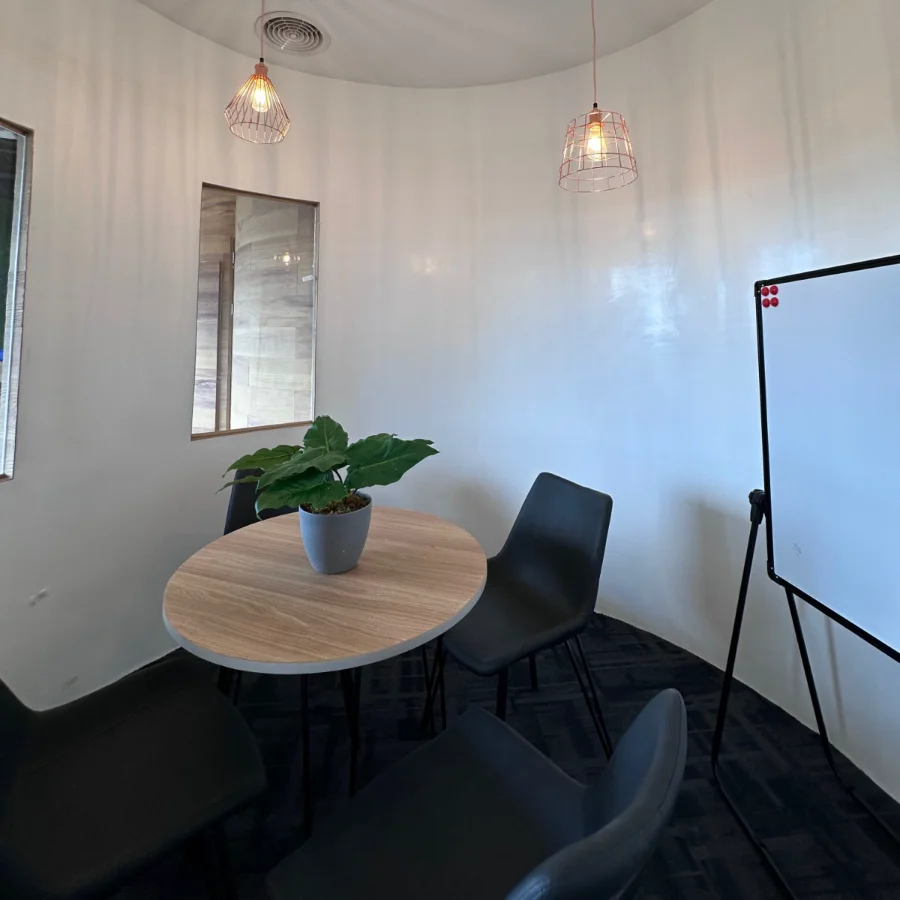 Ideal for small team meetings or collaborative sessions, offering a comfortable environment for productive discussions.
